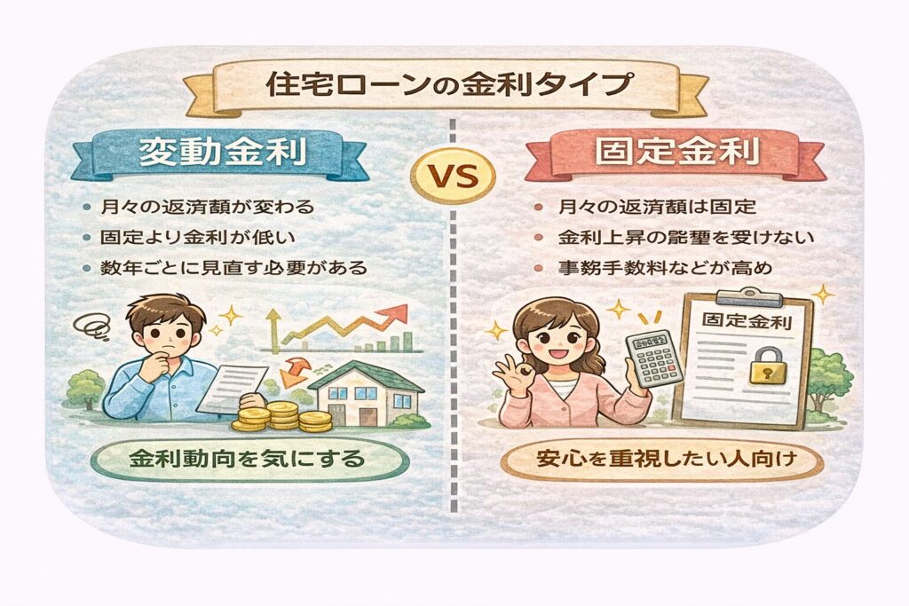 変動金利か、固定金利か という点です。